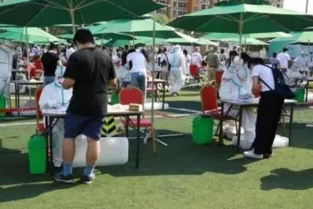 6月以来,北京市接连爆发新冠肺炎确诊病例,各个社区的检测防控工作高度紧张,奋战在抗疫一线的医护人员穿着厚重的防护服,在户外烈日下连续做着核酸检测工作。高温加上高强度的工作很是难熬,但是检测工作不能耽误,更是有人用脚踩冰块,冰水浇头来进行降温,让人看了很是心疼。